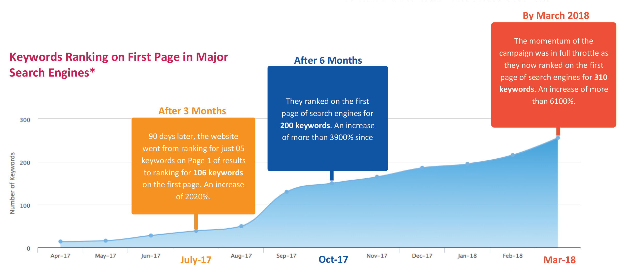 organic rankings and traffic to their website and increase clientele. At the time they signed on for our SEO services they had just 6